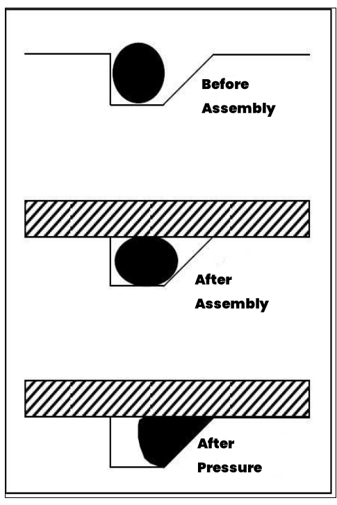Schéma du processus de travail du joint torique dans la rainure trapézoïdale